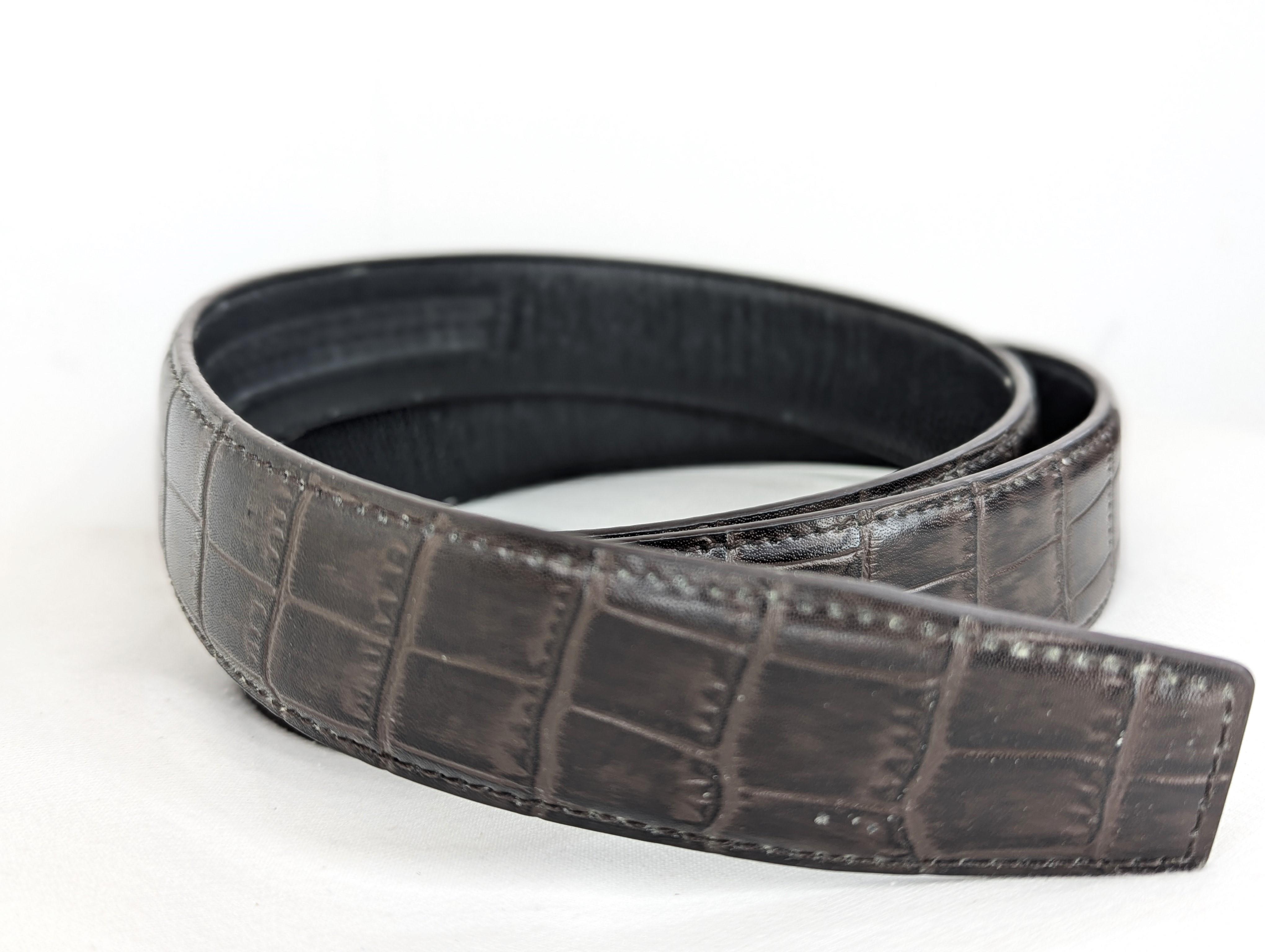 This bold design makes a strong statement and is likely a key selling point. The dark, polished finish adds a sleek, modern touch.The overall look of the belt, from the metal hardware to the detailed texture, gives the impression of a premium, well-crafted item. It doesn't look like a mass-produced, low-quality accessory.